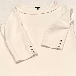 This elegant top features a stylish design perfect for any occasion. Looks great with jeans, slacks or a skirt. Classic and timeless. 3/4 sleeves with decorative buttons.