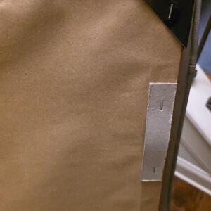 Small hole, pencil eraser size on the back where it's covered with paper. See photo