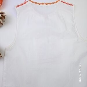 J. CREW White Pink Orange Embroidered Top Sz 2