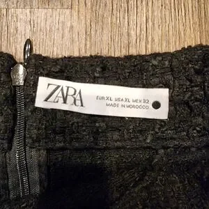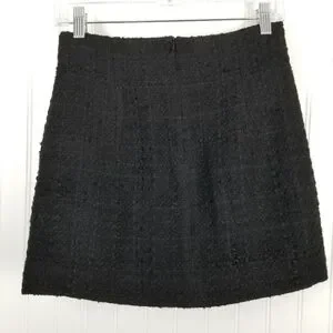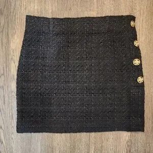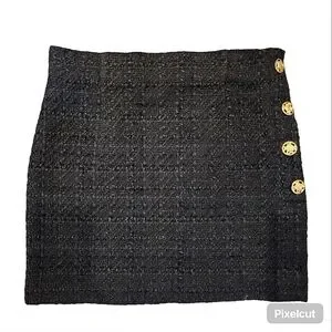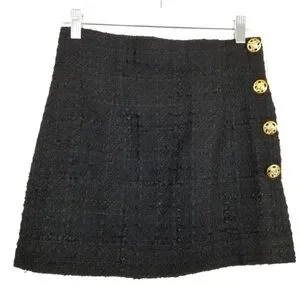 Zara Black Tweed Mini Skirt Gold Button Details Textured Zipper Women's
