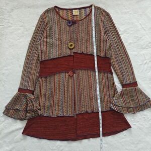 Womens Sweater Cardigan Hand Jive Hand Made Knit Colorful Retro Boho Hippie Sz S