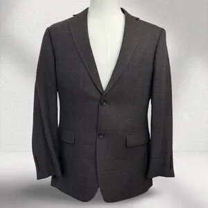 Pronto Uomo Platinum 100% Wool Blazer Men 40R Black Plaid 2 Button Double Vented