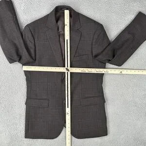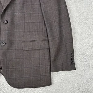 Up for sale is this Pronto Uomo Platinum 100% Wool Blazer Men 40R Black Plaid 2 Button Double Vented. It is in good used condition. Please see photos for exact measurements and wear.