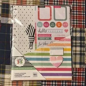 Brighten your planner with these colorful stickers and notes. Includes stripes, hearts, and motivational phrases. This set works with big sized happy planner