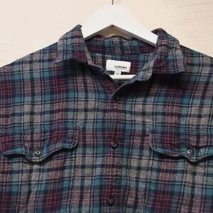 Sonoma Flannel Shirt Size Large Plaid Button Down Long Sleeve 100% Cotton Blue