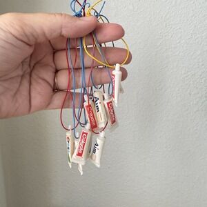 Lot of vintage 1980s little mini toothpaste tubes are so cute! They could have originally been on keychains? Hard to find made in Hong Kong Kong lots of nostalgic vibes. Good condition with some minor wear. Would be perfect for a dentist office mini tree.