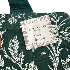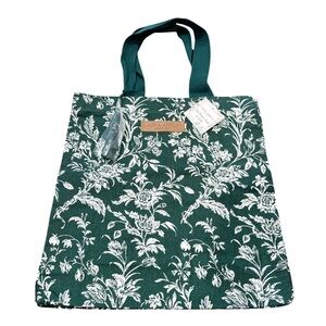 NEW Laura Ashley FLORAL REUSABLE TOTE with Double Handles Dark Green