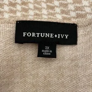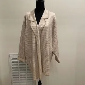 FORTUNE IVY Houndstooth Knit Open Front Cardigan Jacket Blazer 3X Beige