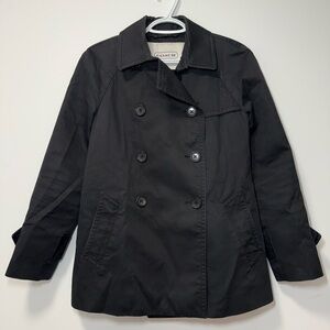 Stylish black blazer by Coach. Features double-breasted design. Perfect for formal occasions. Length 28” Pit to pit 19” Sleeve Length 23”