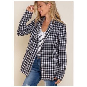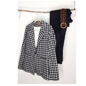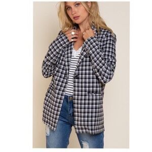 Off White Black Plaid Jacket with Welt Pocket