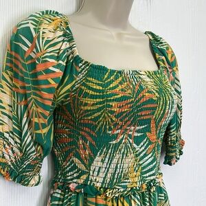 Betsey Johnson - Tropical Leaf Print Smocked Ruffle Tiered Maxi Dress Size XS