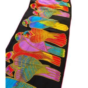 Lauren Burch Vibrant Birds Silk Scarf Multicolor Art Deco Tropical Print Black