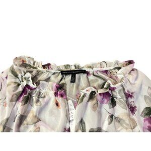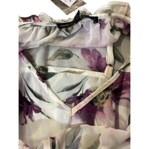 White House Black Market Womens 6 Floral Blouse Ecru Violet Ruffle + Tank NWT
