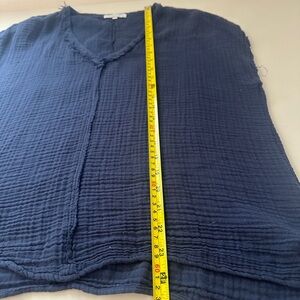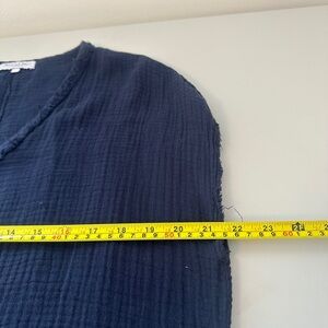 Michael Stars Navy Cotton Gauze V-Neck Shirt With Distressed Edges | Size Medium