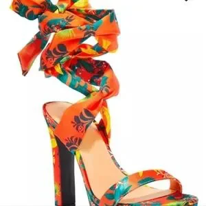 New in Box INC lace up orange floral sandal 5”pumps 1” platform . Size 7.5