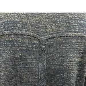 This is such a fun top! Not only are the silver threads in the top sparkly it has a faux button up back! What a unique feature!