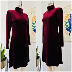 Vintage 90’s Velvet Burgundy Long Sleeve Dress