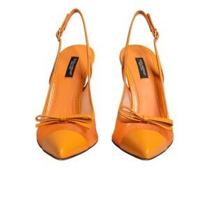 Dolce & Gabbana Orange Leather Mesh Heels Slingback Women's Shoes