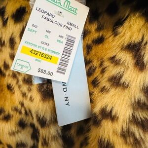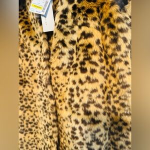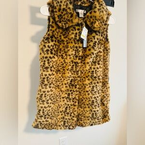 Stylish faux fur vest. Leopard print design. Sleeveless with a cozy collar.