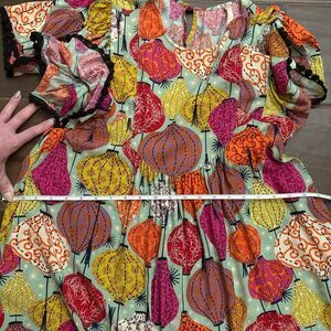 Uncle Frank Chinese Lantern Print Multicolor Short Sleeve Rayon Mini Swing Dress