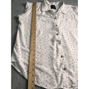 JACHS Girlfriend Women's Quinn Cap Sleeve Button Down Blouse (White/Blk, Size L. Condition is Pre-owned - Good. Shipped with USPS Ground Advantage.