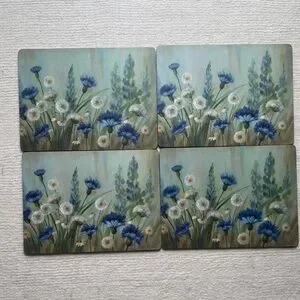 Set of 4 Pimpernel Blue Wildflower Meadow Placemats – Floral Table Decor
