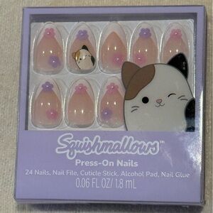 Squishmallows Cat-Themed Press-On Nails with Pink and Purple Accents
