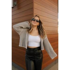 Embrace the vintage trend with the Stitched Sweater Cardigan by MIOU MUSE, a versatile piece for your fall and winter wardrobe. This gray cardigan features long sleeves and a stylish collar, perfect for adding warmth without extra bulk. Crafted from a blend of 42% acrylic, 30% polyester, and 28% nylon, its cropped length makes it ideal for layering. With a convenient pull-on closure, it's a chic option for vacations or Thanksgiving festivities.