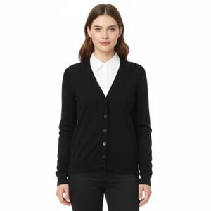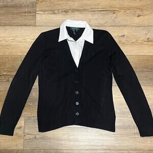 Lauren Ralph Lauren Cashmere Silk Cardigan Sweater Women's M Black Preppy Luxury