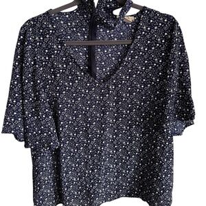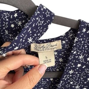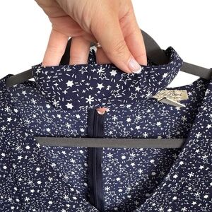 Lucky Brand Dusty Floral High neck top, Size: L, Color: Navy dusty blue and white star print. Great condition, zippers in great condition.