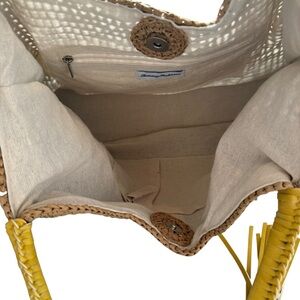Tommy Bahama Raffia Straw Tote Shoulder Bag Leather Trim Hand Crafted