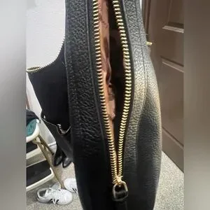 Elegant black hobo bag. Genuine leather. Gold zipper accents. Spacious and stylish. Re-poshing after only a couple uses - wanted to use as a work bag and isn't the right size to fit my computer. In great condition.