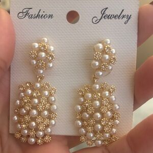 These stunning drop earrings feature a beautiful combination of gold and pearl, perfect for adding a touch of elegance to any outfit. Ideal for special occasions or everyday wear. All beads intact never worn brand new