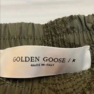 Golden Goose Boyfriend Shirt/Pant set Olive Green embroidery flower details. NWT
