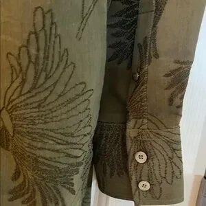 Elevate your style with this Golden Goose chic olive green floral embroidered print Button up boyfriend shirt and pull on pants being sold now as a set.Perfect for any occasion, these pieces made in Italy combine comfort and elegance. NWT absolutely beautiful.