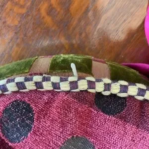 BEAUTIFUL RARE Vintage MacKenzie Childs Round Velvet Pillow with Bow Ribbon Ties