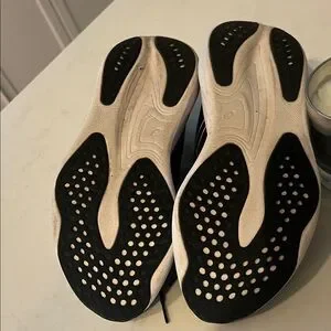 Sleek ASICS running shoes. Black upper with white accents. Ideal for athletic activities. worn 2 times in a nike girl these did not work on my feet
