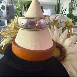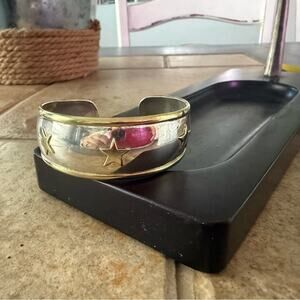 Mexico Sterling Silver Two Tone Star Cuff Bracelet
