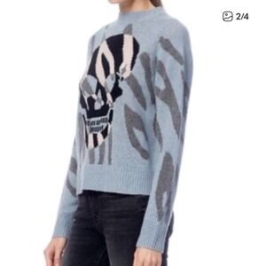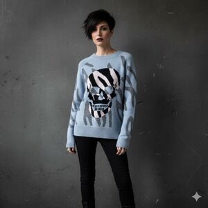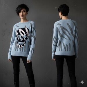 Skull Cashmere Jaden Sweater Women Skull Animal Print Blue Cashmere Wool Goth S