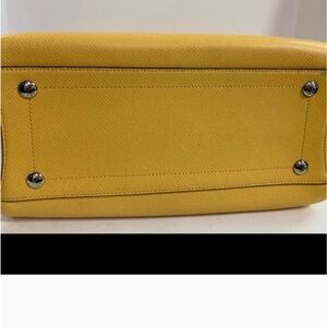 Chic Coach shoulder bag in bright yellow with green straps. Ideal for a bold fashion statement. Beautiful bag in great condition! Just needs some cleaning in a few areas!