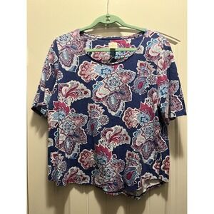 Chico's 2 Paisley Print Tee Top Blue Pink Floral Summer Travel Shirt M