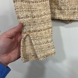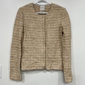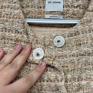 St John Womens Blazer Jacket 4 Tan Tweed Cotton Linen Career Snap Button Crew