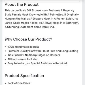 Two (2) Solid brass wall hooks. No hardwaree included. Originally retailed for $18/each