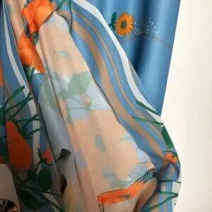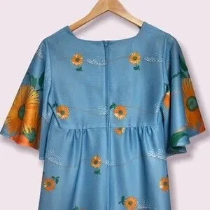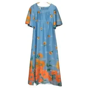 Vintage Maxi Dress Womens XS Blue Orange Floral 100 Parkhouse Dallas Cape Sleeve