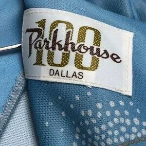 Good vintage condition with flaws. Size and care tags have been removed. I believe the content to be polyester. Hem is loose in one area. Very light spot on skirt area. Please see photos for condition details.