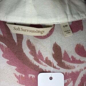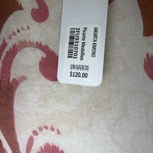 Soft Surroundings Boho White Pink Jakarta Kimono Decorative Trim Sheer Size S/M