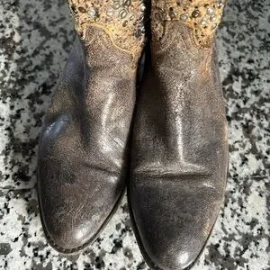Frye women’s size 8 Deborah studded boots.Great condition. Tri-colored metal studs over distressed and perforated full grain leather. Grey metallic leather