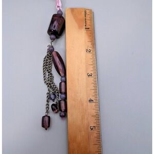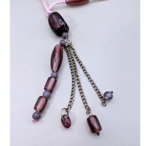 Pink Ribbon Negligee Necklace with Purple Dangling Beads