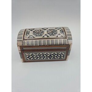 Vintage Egyptian Intricate Mother of Pearl Inlaid Geometric Wood Trinket Box
