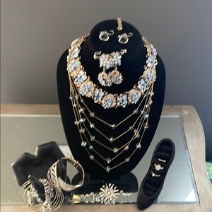 This stunning jewelry bundle features a blend of gold, blue and silver tones. 2 necklaces, 4 bracelets, 3 rings and 2 pairs of earrings and 1 pendant!